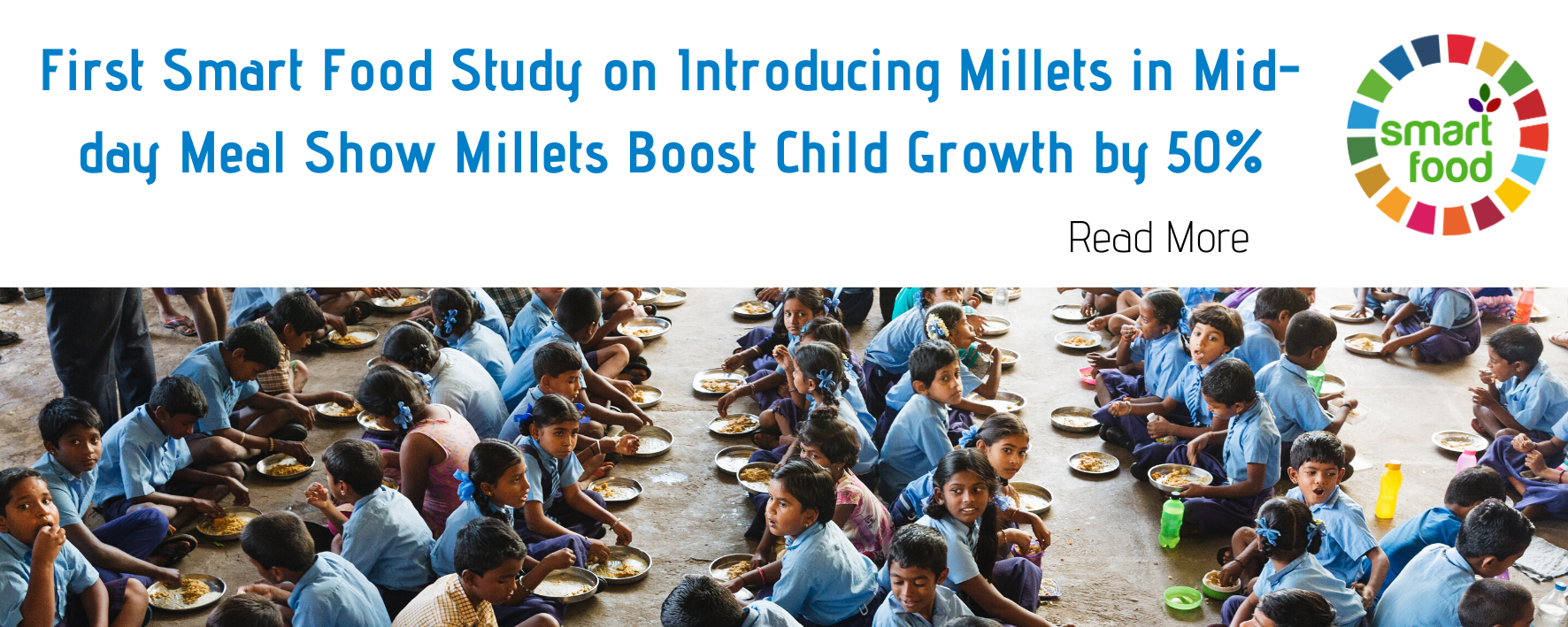 Some activities to date include: Engaging Food Service Industry: Smart Food is a catalyst to spread the value and opportunities for Food service to work with millets. We have worked with Government of Karnataka (Organics and Millets Trade Fair) and MS Ramaiah University of Applied Sciences. Some activities include: Bringing millets into school feeding programs: Smart Food has collected lessons learnt on the best ways to introduce millets into school meals. We have also piloted to show the student acceptance and nutritional benefits. Working with Akshaya Patra, approximately 1,500 adolescent school children provided a millet-based mid-day meal. A random sample of 10% of the children given millet-based school lunches showed 50% faster growth than those eating fortified rice based meals. What’s more, the children rated them as at least 4.5 out of five for taste, making millet-based meals not only healthy but appealing as well. (Read more) Signing of MOA with SMEs to collaborate on Smart Food promotions  Mr. Prashant Parameswaran, Managing Director, Kottaram Agro Foods Mr. Sridhar Iriventi, Co-founder and Director, GoBhaarati Agro Industries Mr Vikram Sankaranarayanan, Managing Director, SanLak Agro-Industries Supporting the government of India: Smart Food has contributed to the government strategies. This include some Government of India initiatives: Signing of an MOU between ICRISAT and IIMR to jointly coordinate Smart Food initiatives in India.  Smart Food millet efforts in India are coordinated in collaboration with: