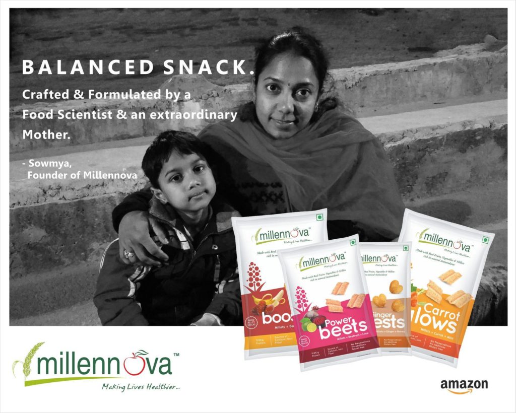 Millennova Foods aims to revolutionise the snack industry with convenient, healthy & nutritiously ready to eat bites with the goodness of millets flavoured using fruits and vegetables. Their snack product is transfat free and gluten-free with no added additives or preservatives, making it ideal for all age groups. Millennova Snacks provide 20% recommended daily nutrition intake, 13gms of Protein |75mg of Calcium | 5mg of Iron | 3gms of Fibre. Co-founder, Sowmya M, a Food Technologist & Nutritionist have formulated millenova products using sustainable alternatives that give high amount of nutritional values.