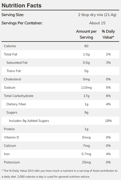 Ingredients: Organic Turbinado Sugar, Organic Brown Rice Flour, Millet Flour, Sorghum Flour, Chocolate Chips (cane sugar, chocolate liquor, cocoa butter), Organic Pea Protein, Organic Tapioca Flour, Arrowroot Powder, Organic Golden Flax Seed Meal, Baking Soda, Guar Gum, Sea Salt, Cinnamon.