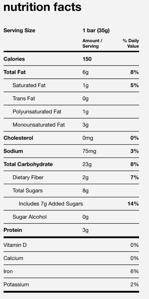 Ingredients: Gluten free oats, cane sugar, semi-sweet dark chocolate (sugar, chocolate liquor, cocoa butter, soy lecithin, vanilla extract), canola oil, brown rice, honey, tapioca syrup, millet, peanut butter (peanuts, salt), peanuts, buckwheat, amaranth, brown rice flour, gum acacia, quinoa, water, sea salt, peanut flour, brown rice syrup, gluten free oat flour, tocopherols.