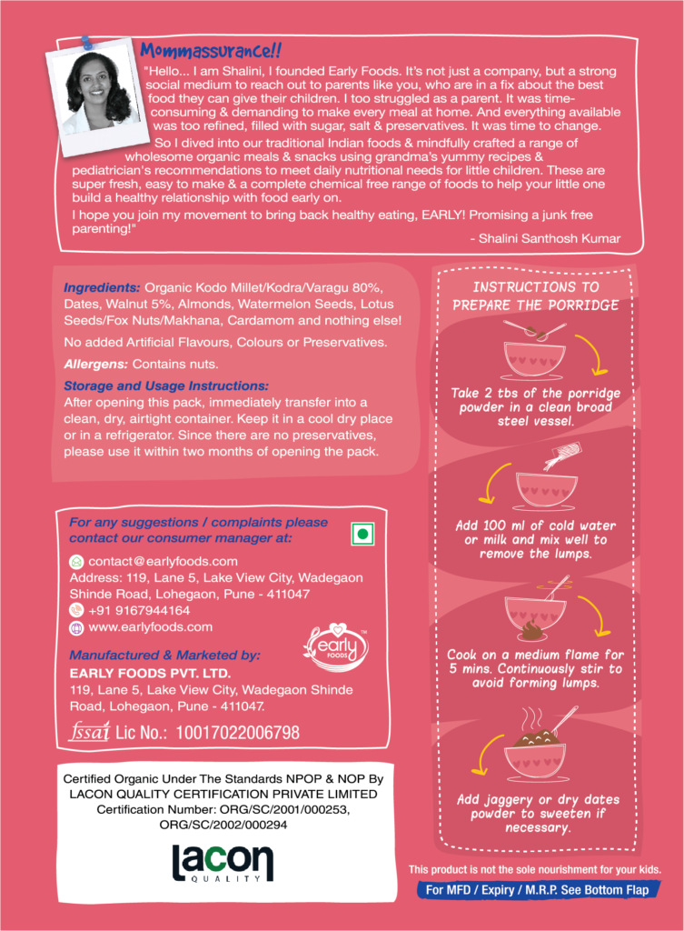 Kodo Millet Walnut Porridge Mix by Early Foods