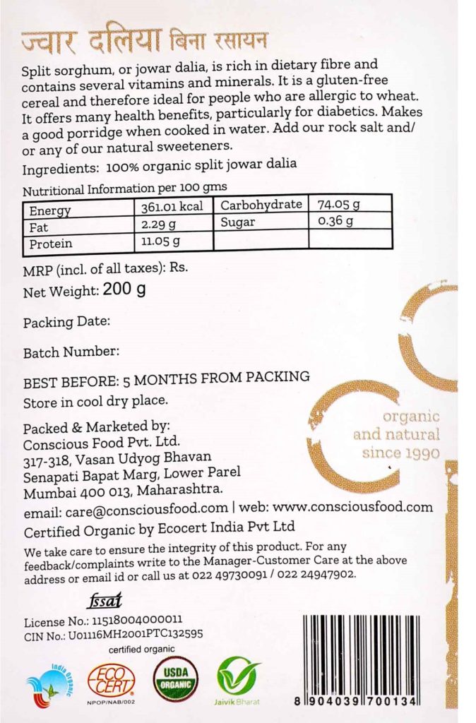 Split Sorghum (Jowar Dalia) by Conscious Foods